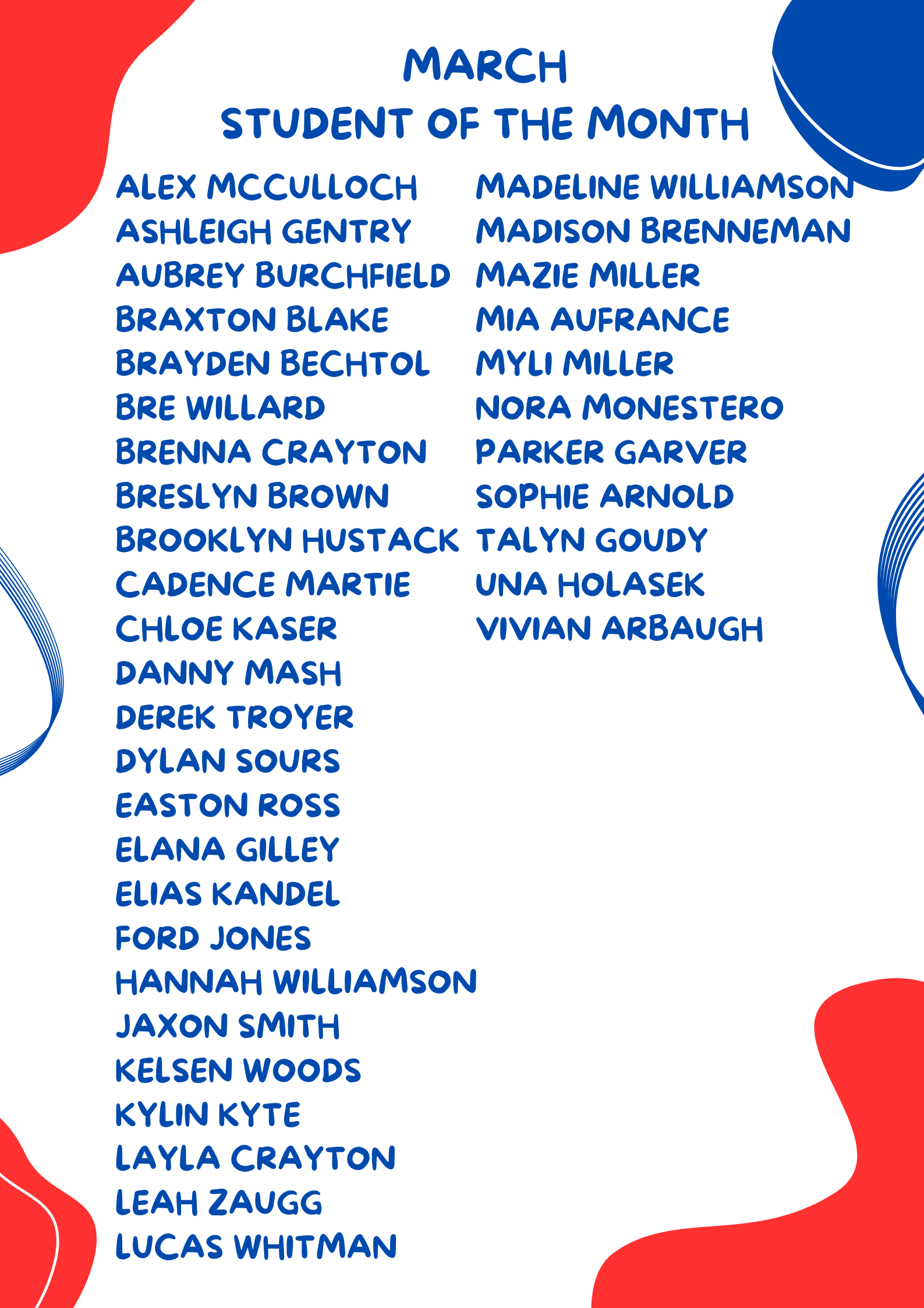 Areas: gym (if available), commons, hallways